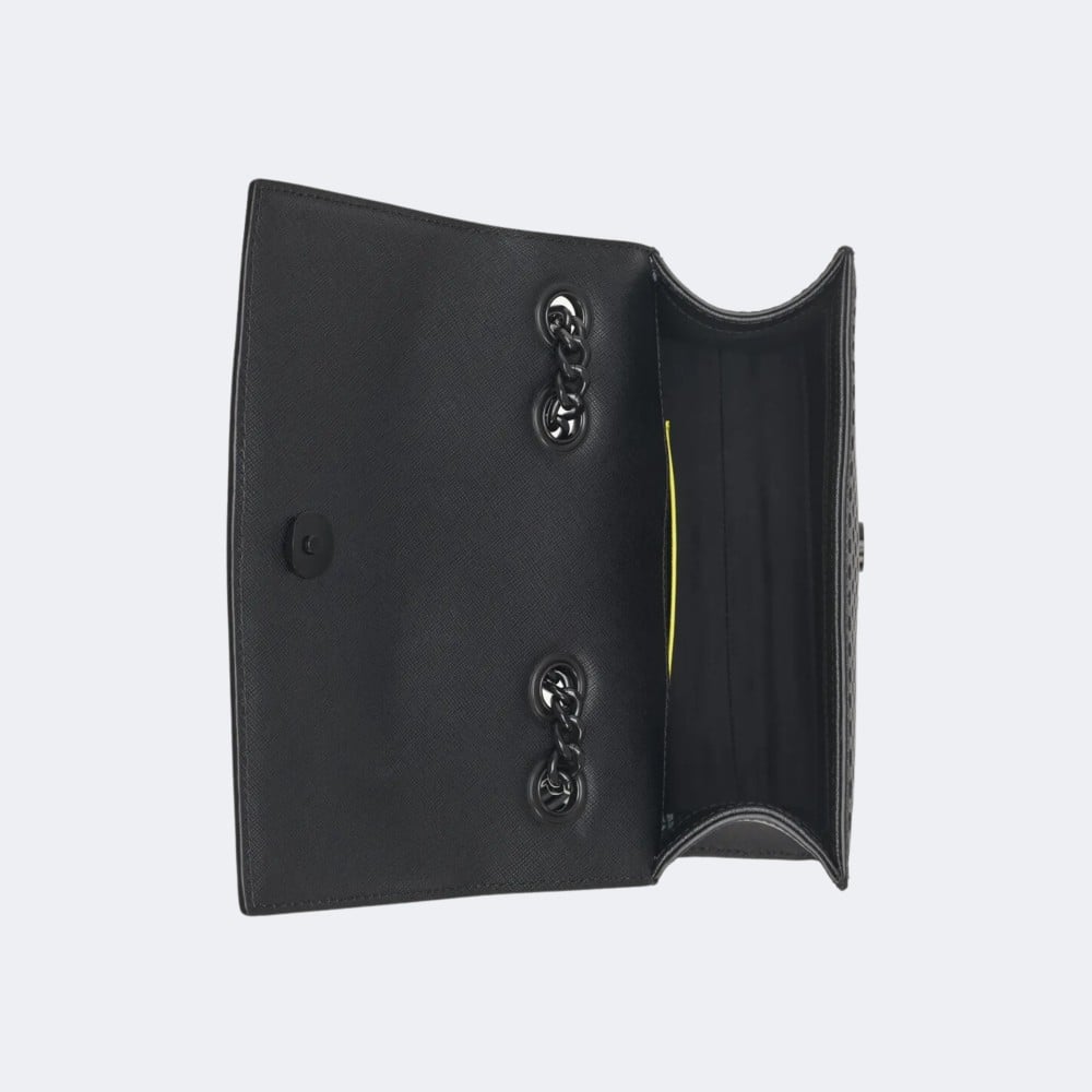 - الحزام: الحزام القابل للتعديل مصنوع من سلسلة معدنية، مما يمنح الحقيبة مظهرًا عصريًا ويمكن ارتداؤها كحقيبة كتف أو كروس بودي.
